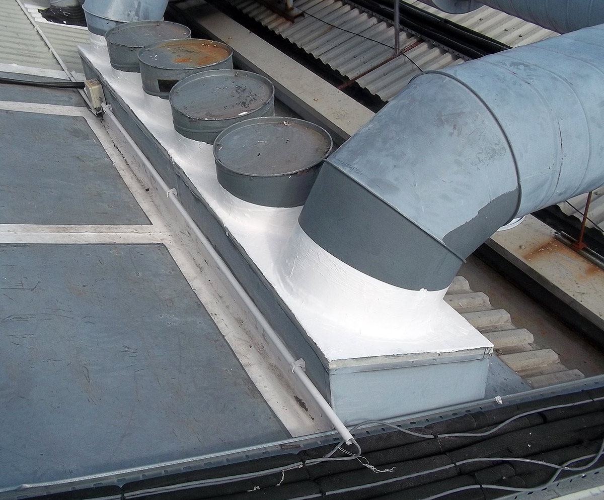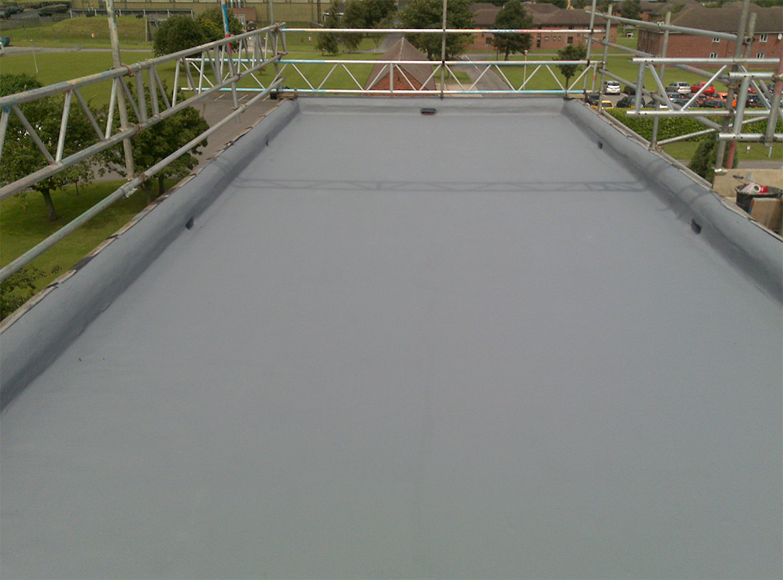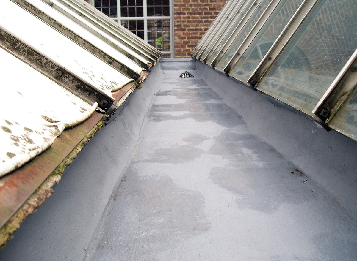 Liquid roofing involves the application of a monolithic, fully bonded, liquid based coating to a roof. The coating cures to form a rubber-like elastomeric waterproof membrane, capable of stretching and returning to its original shape without damage. Such coating systems are usually reinforced with secondary materials such as glass-reinforced plastic to provide additional tensile strength. The coatings can be applied over most traditional roofing materials, including felt, asphalt, bitumen, and concrete. Liquid Applied Membranes (LAM) are water-based polymer membranes.